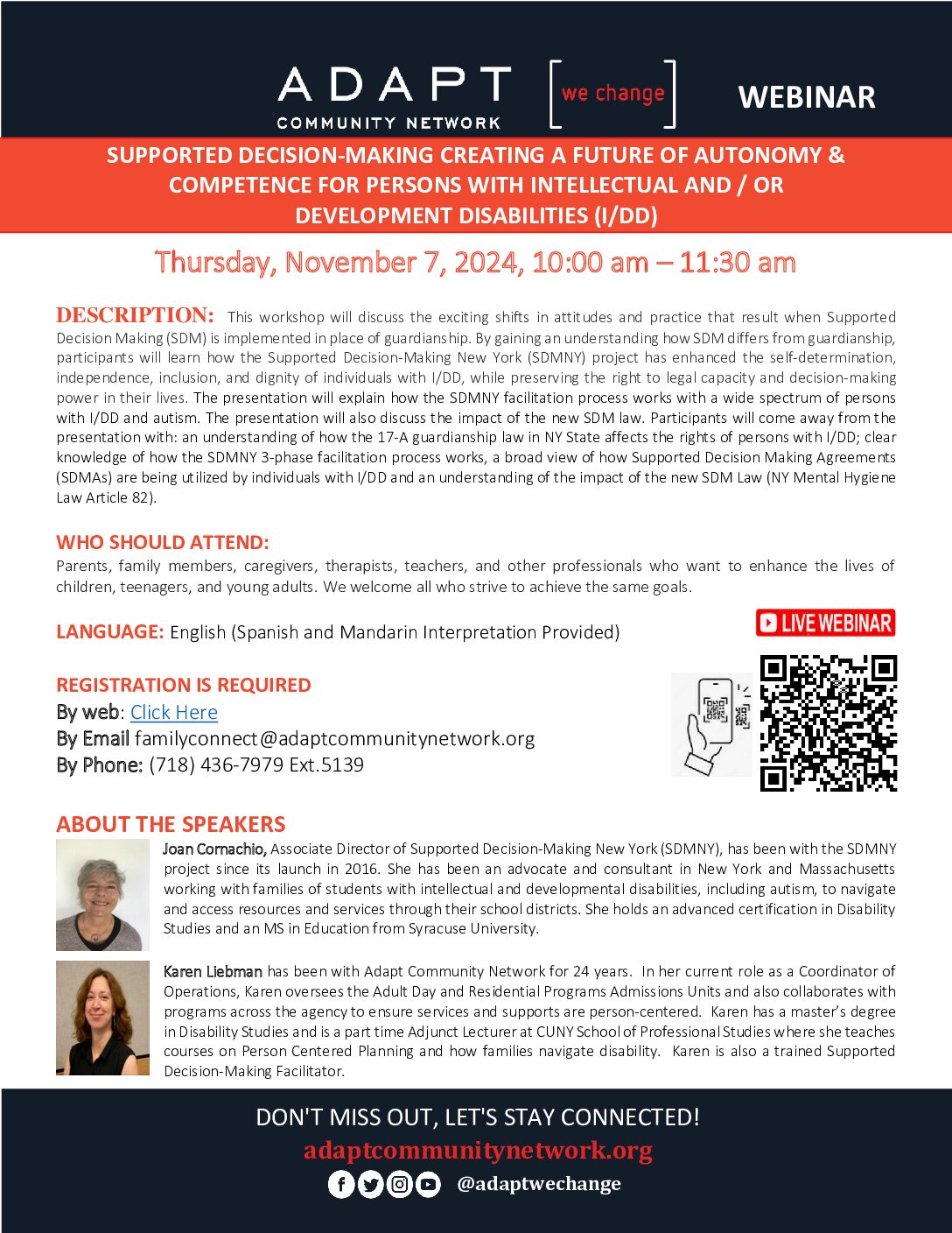 ADAPT COMMUNITY NETWORK-Supported Decision-Making Creating a Future of Autonomy & Competence for Persons with Intellectual and / or Developmental Disabilities (I/DD)
