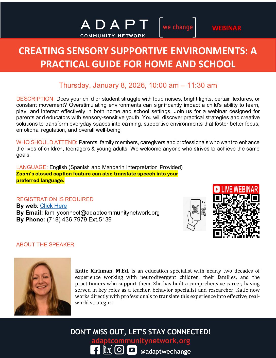 FREE WEBINAR-ADAPT COMMUNITY NETWORK Creating Sensory Supportive Environments: A Practical Guide for Home and School