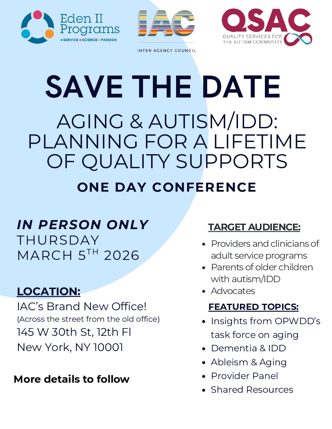 SAVE THE DATE-Aging & Autism/IDD: Planning for a Lifetime of Quality Supports